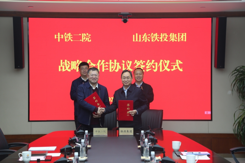 12月24日下午,山東鐵投集團(tuán)與中鐵二院在集團(tuán)總部大樓簽署戰(zhàn)略合作協(xié)議。中鐵二院黨委書記、董事長杜建軍,山東鐵投集團(tuán)黨委書記、董事長王衛(wèi)中出席并見證簽約。中鐵二院黨委常委、副總經(jīng)理梁春祥,山東鐵投集團(tuán)黨委委員、副總經(jīng)理?xiàng)羁∪黼p方簽約。