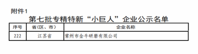 近日,工信部2025年國家級專精特新“小巨人”企業(yè)名單公布,山東鐵投集團權(quán)屬博深股份公司子公司常州市金牛研磨有限公司(簡稱金牛研磨)成功入選2025年專精特新“小巨人”企業(yè)名錄。