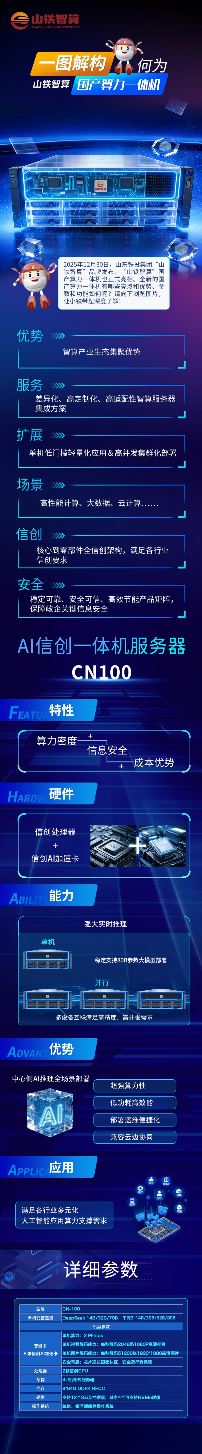 2025年12月30日,山東鐵投集團(tuán)“山鐵智算”品牌發(fā)布,“山鐵智算”國產(chǎn)算力一體機(jī)也正式亮相。全新的國產(chǎn)算力一體機(jī)有哪些亮點和優(yōu)勢、參數(shù)和功能如何呢?請向下瀏覽圖片,讓小鐵帶您深度了解!
