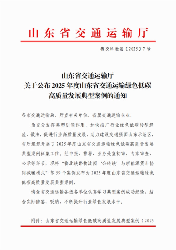 近日,省交通運(yùn)輸廳發(fā)布2025年度山東省交通運(yùn)輸綠色低碳高質(zhì)量發(fā)展典型案例,山東鐵投集團(tuán)濟(jì)青高鐵公司《基于路域固廢的高速鐵路混凝土設(shè)計(jì)與應(yīng)用典型案例》入選。